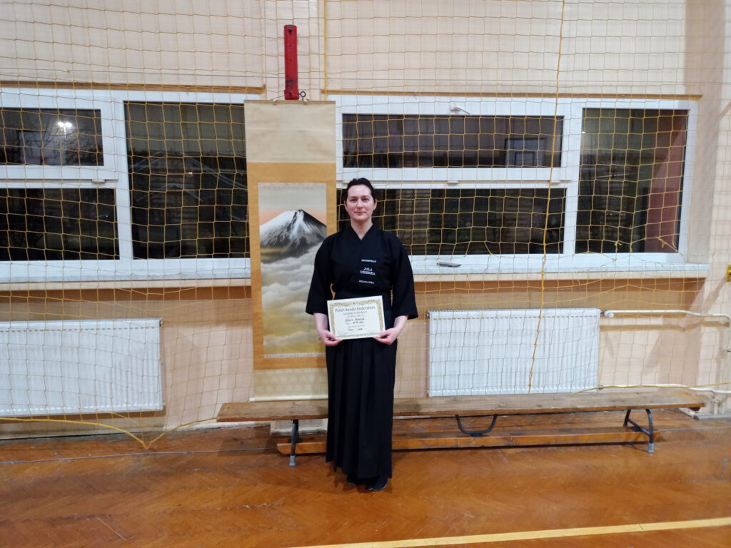Racibórz | 2020/12/12-13 – Na zakończenie roku ciężkiego bo w pandemii wybraliśmy się na zgrupowanie iaido, które poprowadzili w Raciborzu sensei Mirella Stern 5 Dan i sensei Adam Mijchrzak 5 Dan. Podczas zgrupowania na stopień 3 Kyu zdała egzamin Jola. Gratulujemy.